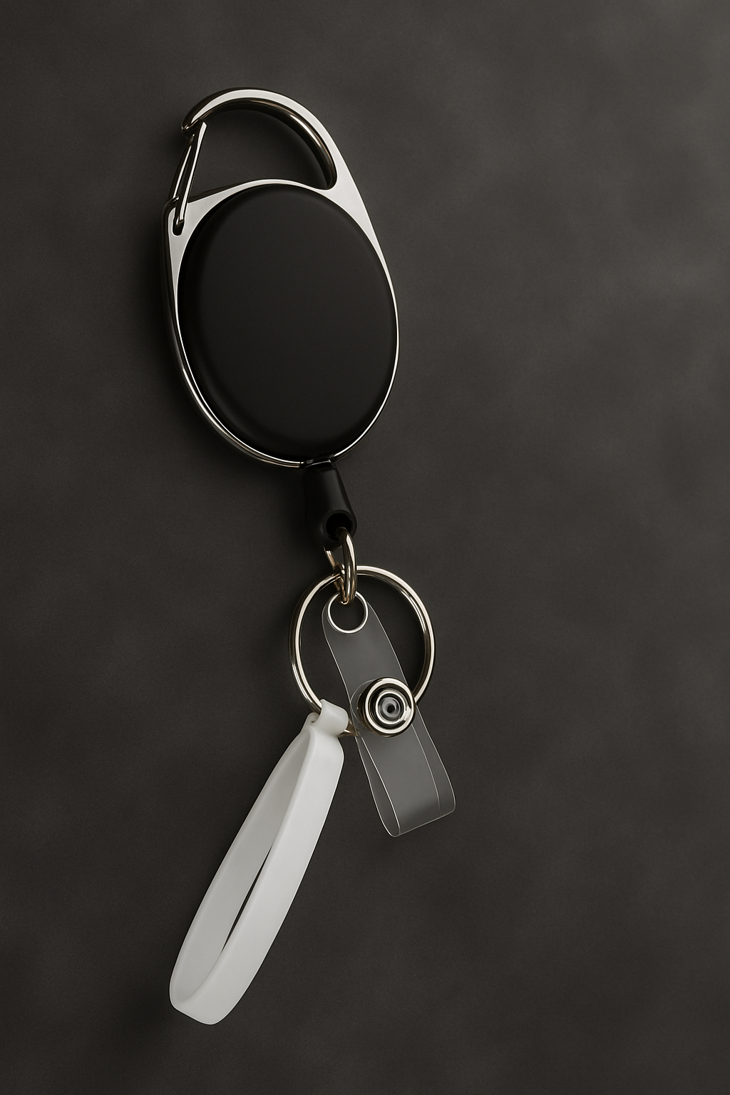 Vape in style. This premium retractable Vape Leash combines modern design with everyday practicality. Featuring a smooth black finish and durable metal carabiner, it securely clips to your belt loop, bag, or lanyard for effortless access to your vape.